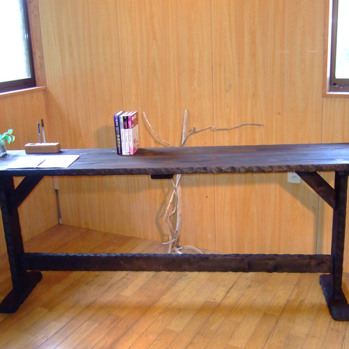 | 商品の特徴 | 送料無料コヤ木工こだわり製作創りたて!大型カウンターテーブル。コヤ木工こだわり製作創りたて!特大カウンターテーブル!。コヤ木工こだわり製作創りたて!特大カウンターテーブル!。送料無料コヤ木工こだわり製作創りたて!大型カウンターテーブル。和歌山県高野山麓で森の中にある工房より個展等を中心に木工作家として創作活動をさせて頂いております こちらへの出品作品は サービス価格にさせて頂いておりますので お値引きはご遠慮下頂けましたら幸いです 作風などは下記でご覧頂けます ★大きさと重量 横長さ約120cm奥行き約40cm 天板高さ約70cm天板厚み約3cmこのクラスでは大変軽量な約12キロです★作品説明★木の香りに包まれた暮らしはじめてみませんか♪当工房では家具の創りたてにこだわります創りたての杉の香りには森林浴を思わせる爽やかな香りがお部屋に広がってとてもリラックスできる天然のアロマ効果をご堪能頂けます樹齢50年以上の奈良県ブランドの銘木吉野杉で2年間当工房で自然乾燥させ創作いたしました表面染めは古来日本建築で使用された技法で天然素材の風合いが損なわないよう松墨を砕いた自作塗料を施し学校建築でも推奨される安全性の水性ニスで天板コーティングをしてノスタルジックな色彩に染めております角に軽く丸みをつけてありますので小さなお子様も安心して頂けると思いますかなり軽量ですのでキッチンテーブルや夕涼みなど気軽に連れ歩いてお楽しみ頂けると思います自然の木で若干の小ヒビある事が御座いますが質感と強度に問題は無いと思います天板淵にコヤ木工独特の彫刻にて和・洋・アジア・様々な空間に違和感無く確かな存在感をご堪能頂けましたら幸いです★到着家具で何か御座いました際は評価でなく必ず先に取引連絡よりお知らせご相談下さいませ評価終了してしまいますと御希望のご対応難しい事が御座います★店舗用に複数台数やサイズ違い等はお気軽にお見積りお伺い下さい心を込めてお創りします納期や保証、施工例などはプロフィール欄をご覧下さいませ★ヤマト運輸発送になります午前中または12時~21時までご相談頂けます発送後は伝票番号等ご連絡させて頂きます★発送時お手入れ方法お手紙等同梱させて頂きますお手数をお掛け致しますが到着後脚と天板取り付け用にプラスドライバー1本ご用意頂けましたら幸いです★数日で削除再出品させて頂く事があります#カウンターテーブル #テーブル #机 #手作り #ハンドメイド | ||